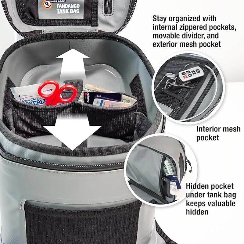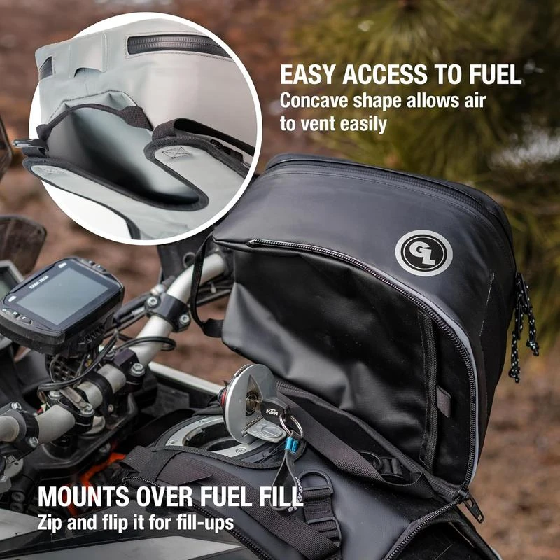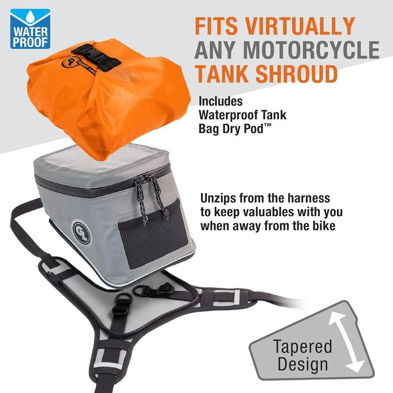 - Includes a waterproof Tank Bag Dry insert to prevent moisture from reaching sensitive gear in bad weather