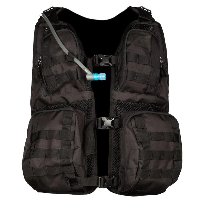 KLIM Arsenal Vest: a complete, expedition-ready cargo solution. The Arsenal vest provides an amazing amount of storage space, and distributes the weight of that storage around your torso. It features a tool that fits into the vest, and also includes a hydration pack. The whole thing is well made and versatile.