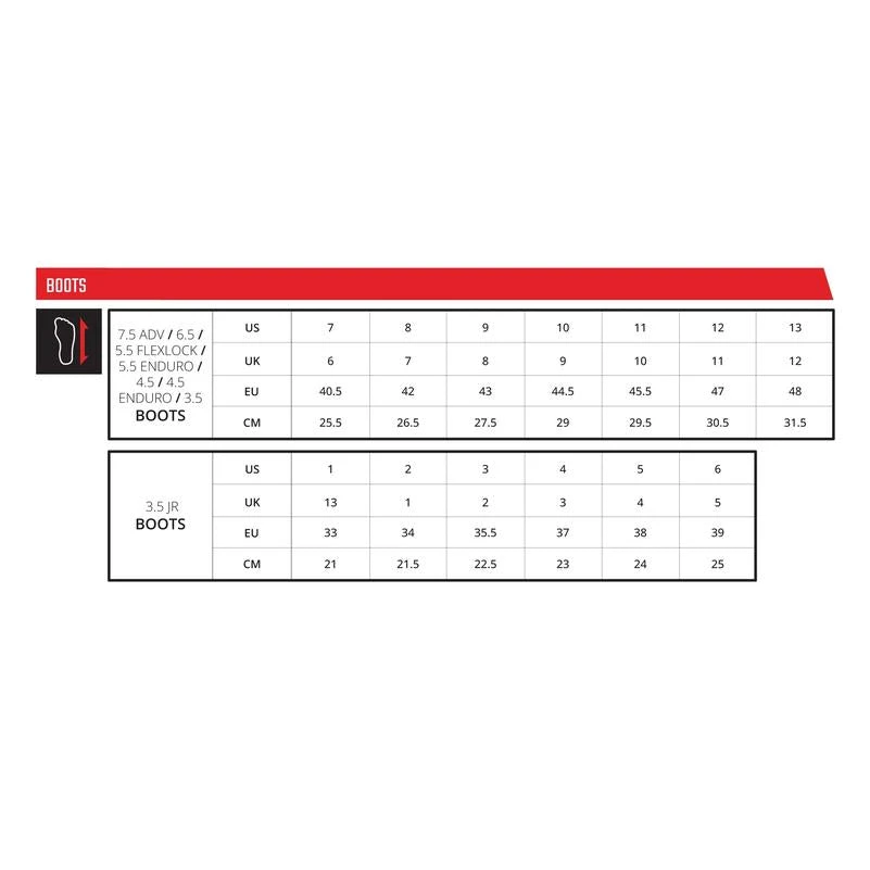 The 4.5 Boot delivers comfort, control, and safety. The SlideLock auto-locking one-way sliding closure ensures a secure and comfortable seal at the top of the boot. Exceptional bike grip is guaranteed with the flat and grippy interior of the boot. The low-profile toe-box makes gear shifting easier and more intuitive. The boot’s design focuses on ankle support, with a heel grip ankle design that provides stability when riding on your feet. The boot is lined with a breathable mesh 3D liner, which offers excellent air circulation, anti-slip reinforcement, and zero heel lift.