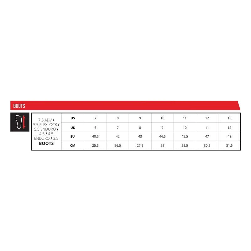 For protection, the boot includes 3DF impact foam protection in the ankle area, and an impact-reinforced shin plate. The heel features shaped support for added stability. The sole, with its ADV pattern, provides great feel both on and off the bike, and is steel shank reinforced for added durability. The boot is CE certified, ensuring it meets high safety standards.