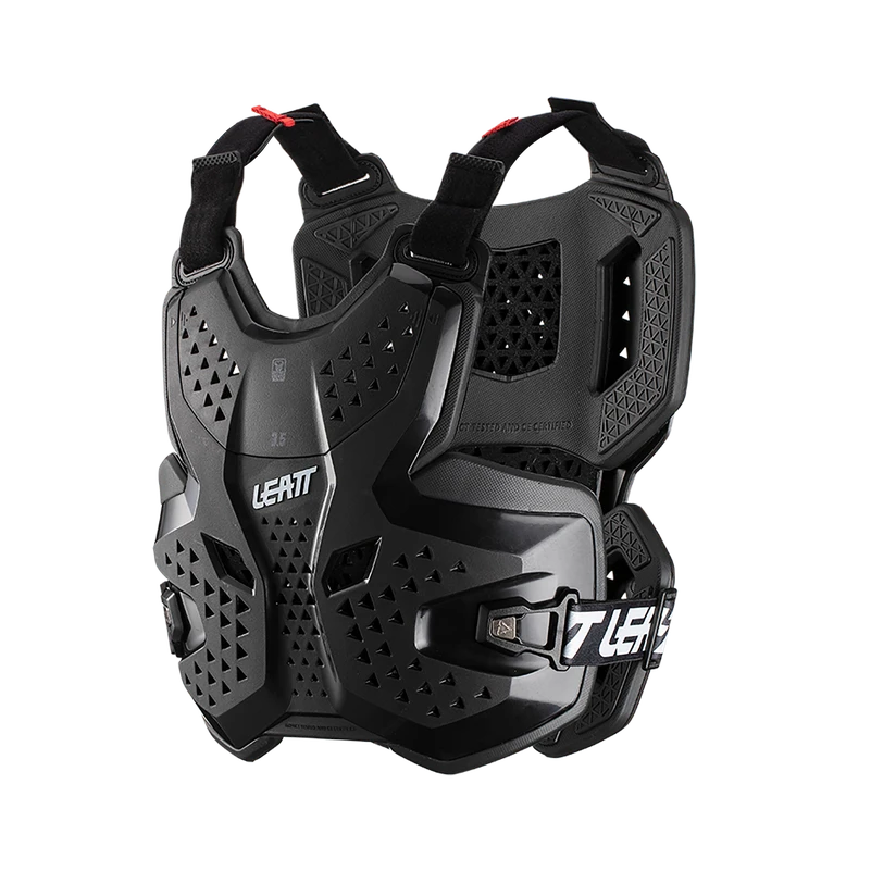 The Chest Protector 3.5 provides exceptional protection for the chest and back. It is constructed from a combination of hard shell and 3DF AirFit soft impact foam. The 3D design guarantees an excellent fit, and the ventilation slots ensure maximum airflow. For added versatility, the front and rear plates are removable. The BraceOn system allows for a seamless neck brace fit.