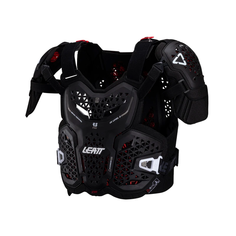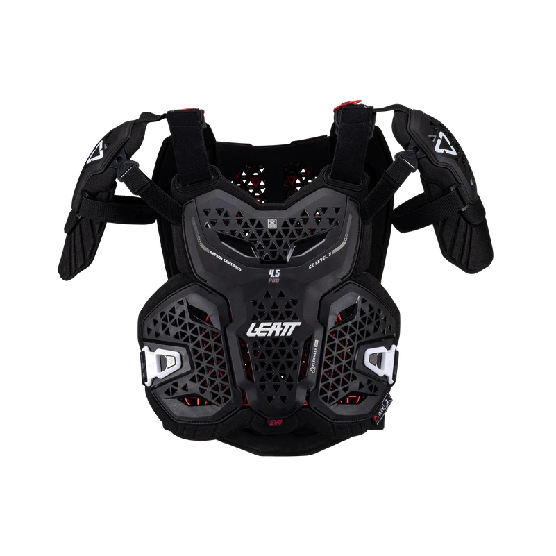The Chest Protector 4.5 Pro EVO provides premium protection for the chest, back and shoulder. This model is 30% lighter and 50% more ventilated compared to the 2023 model, offering enhanced comfort and breathability on extended rides.