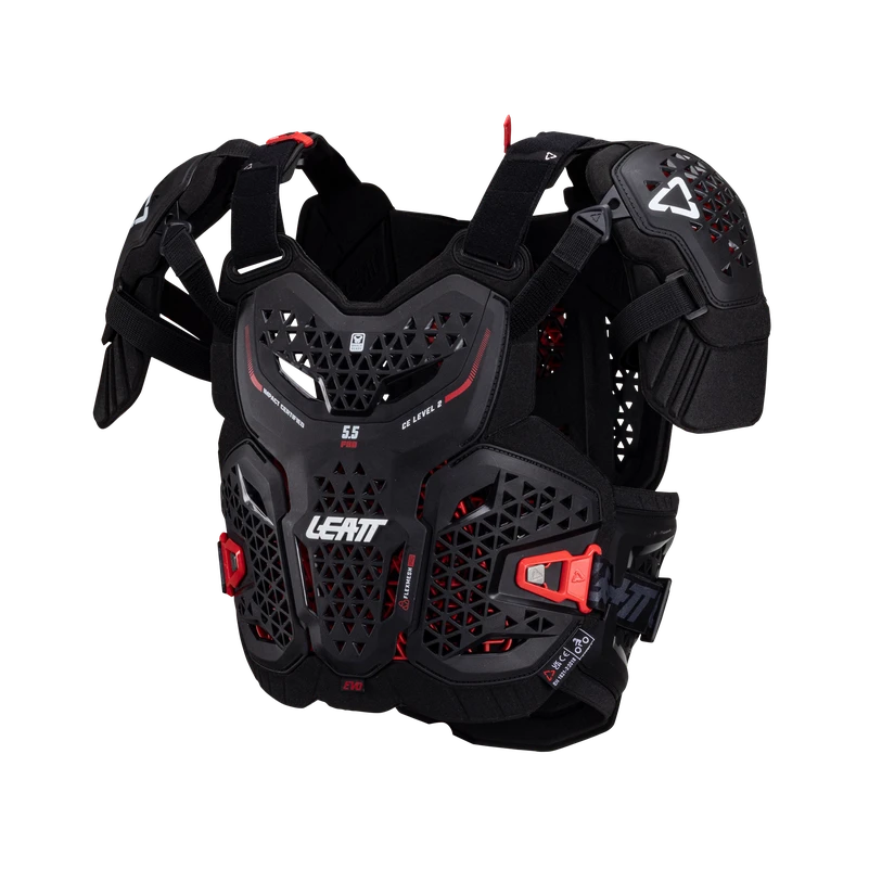 The Chest Protector 5.5 Pro EVO provides premium protection for the chest, back and shoulder. This model is 30% lighter and 50% more ventilated compared to the 2023 model, offering enhanced comfort and breathability on extended rides.