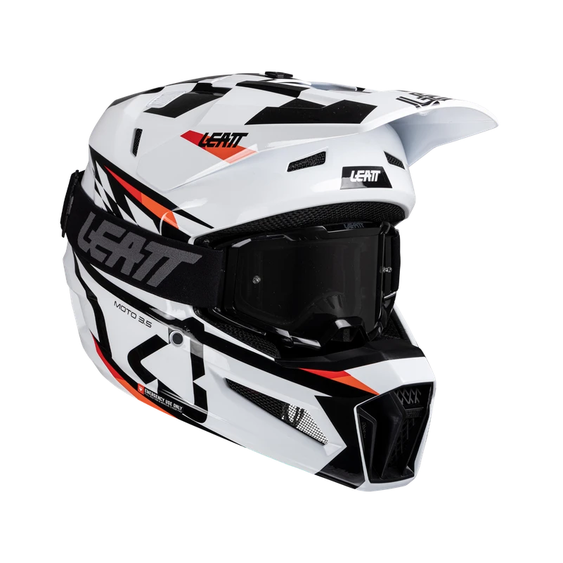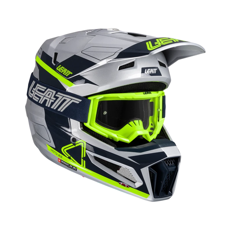 This kit is made up of the Moto 3.5 helmet and Vizion 3.5 goggles. The helmet and goggle kit set is unique to Leatt, with both products contributing to incredible head, brain, and eye protection.