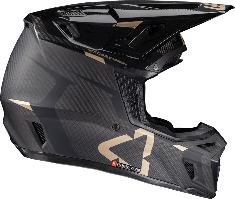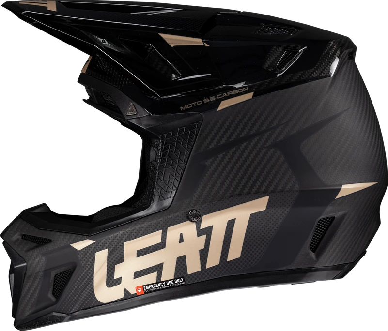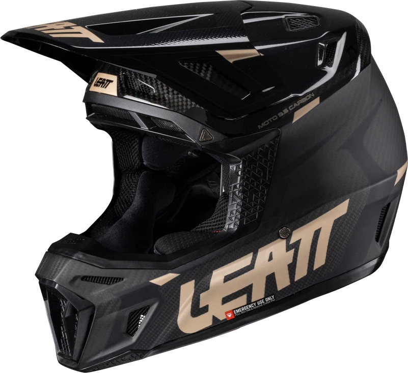 The Moto 9.5 carbon helmet is the pinnacle of high-performance protection. It features Leatt’s patented 360º Turbine Technology, where the energy absorption of the turbines helps reduce the low-speed impact energy to the head and brain. Crafted from a carbon matrix shell, the helmet is lightweight yet robust. It has four densities of impact foam to absorb and disperse collision forces. The visor and cheek pads feature quick release functionality, and the hydration side port is compatible with an optional hands-free kit.