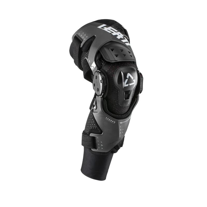 The X-Frame Hybrid is a medically certified knee brace, complete with a Hybrid ReaFlex impact gel knee cup. It is made of injected carbon composite, and is the top-level cage-type knee brace in the Leatt range, reducing forces to limit knee injuries. The slimmer inner hinge provides superior bike feel, while the metal geared outer hinge offers precise movement and durability.