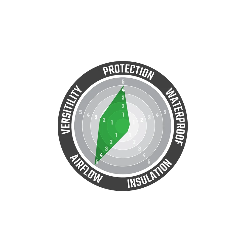 - Heat resistant panels on lower inside leg
