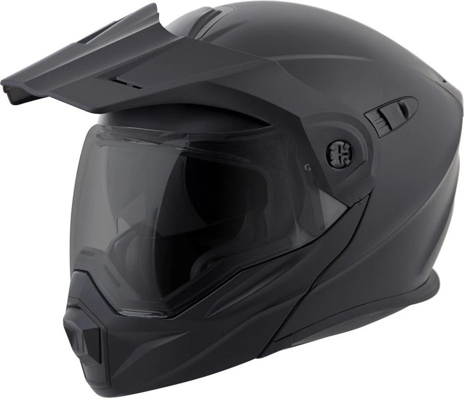 Introducing the EXO-AT950, a versatile modular adventure touring helmet. It has features and quality that you would expect to pay far more. The EXO-AT950 can be used as a full face adventure helmet with external peak visor attached, or the peak visor can be removed and you have an aerodynamic touring helmet. The no-fog Everclear face shield can be removed and you can use the EXO-AT950 as a dirt helmet with goggles for off-road use. Our oversized eye port is extremely wide for greater peripheral vision and downward visibility, and the modular chin bar can be conveniently flipped up when you stop to get gas or ask for directions. The internal drop down sun visor and Kwikwick II liner will keep you comfortable all day long even as lighting conditions change throughout the day. Three shell sizes made of advanced LG polycarbonate and dual density eps, result in a helmet that is light weight, strong, and protective.
