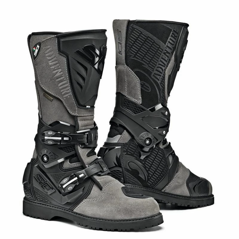 The Sidi Adventure 2 Gore-Tex is one of the most high tech and protective Adventure Motorcycle boots available. ADV 2s feature a sophisticated mechanical hinge at the ankle, which gives class leading ankle support. Sidi’s excellent buckles are set and forget, rarely needing adjustment. A Gore-Tex liner is Guaranteed to Keep you Dry, and a nice lugged sole gives you grip when off the bike.