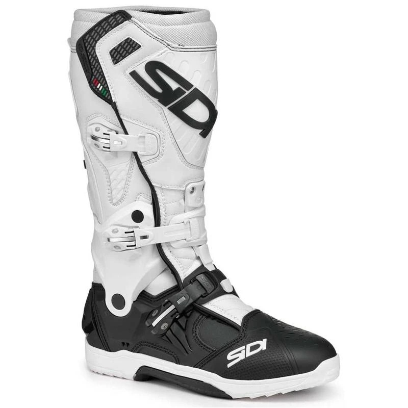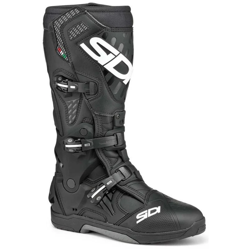 The Sidi CrossAir Boot is a new – and welcome – direction for off road boots. Sidi has worked hard to make the boot much lighter than any other off road boot (1665 grams / 3.66 lbs for a size 43) while still delivering Sidi quality and protection. An internal fiberglass reinforced exoskeleton delivers support and safety while maintaining this incredible light construction. Its sole has been developed together with Vibram to reach new level of grip and flexibility. They also have a WIDE FIT.