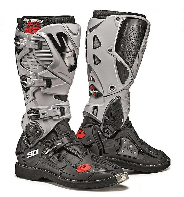 The Sidi Crossfire 3 TA is identical in features to the SR, except it features a sewn on welt sole. This different sole construction improves the fit (more wide) and the feel (easier to walk in), Otherwise it has all the same features as the SRS version. Most importantly, the Crossfire 3 has a mechanism in the hinge to mechanically limit hyperextension and hyperflexion at the ankle. They are the most technical and protective offroad boots in the world.